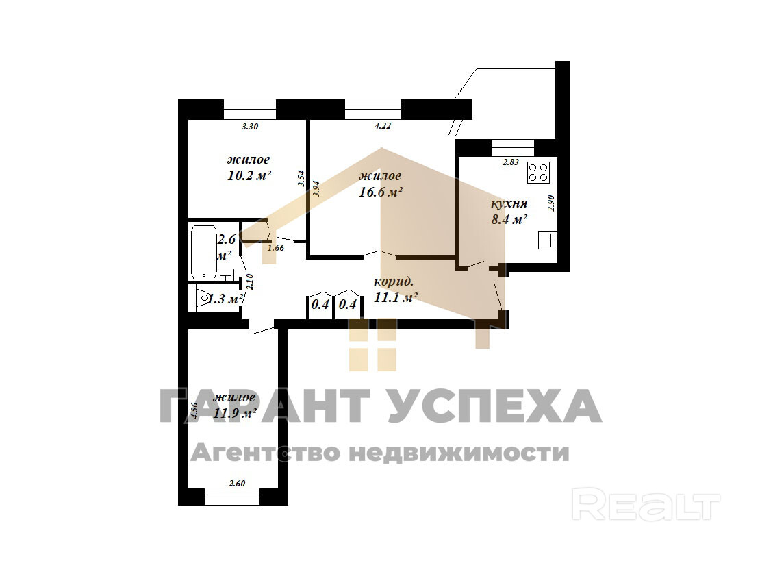 ЧУП «Гарант успеха», УНП 290472700, лицензия № 02240/137 от 20.10.2006 г., договор на оказание риэлтерских услуг №222/1 от 14.04.2026 г.