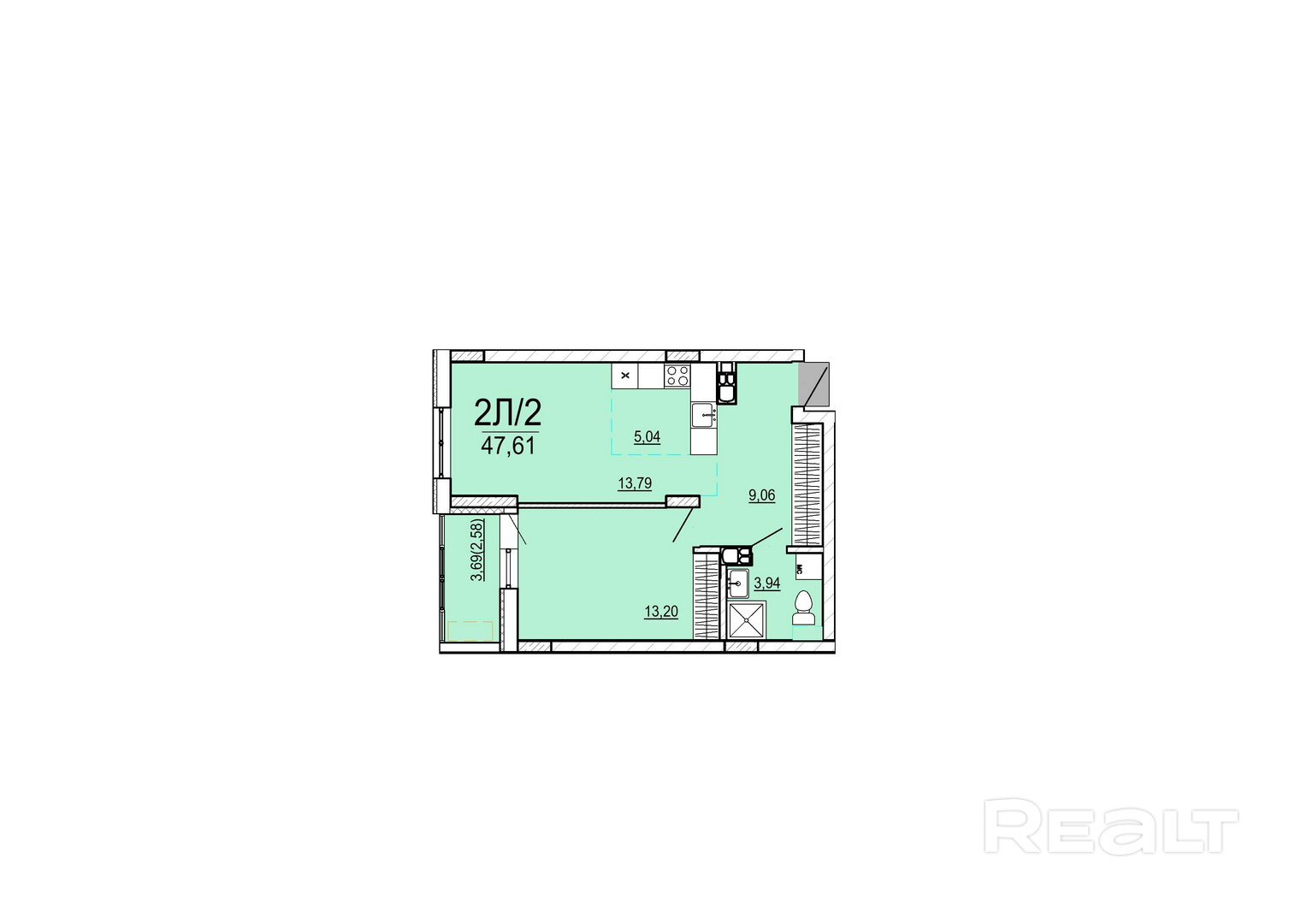 47.61 м²