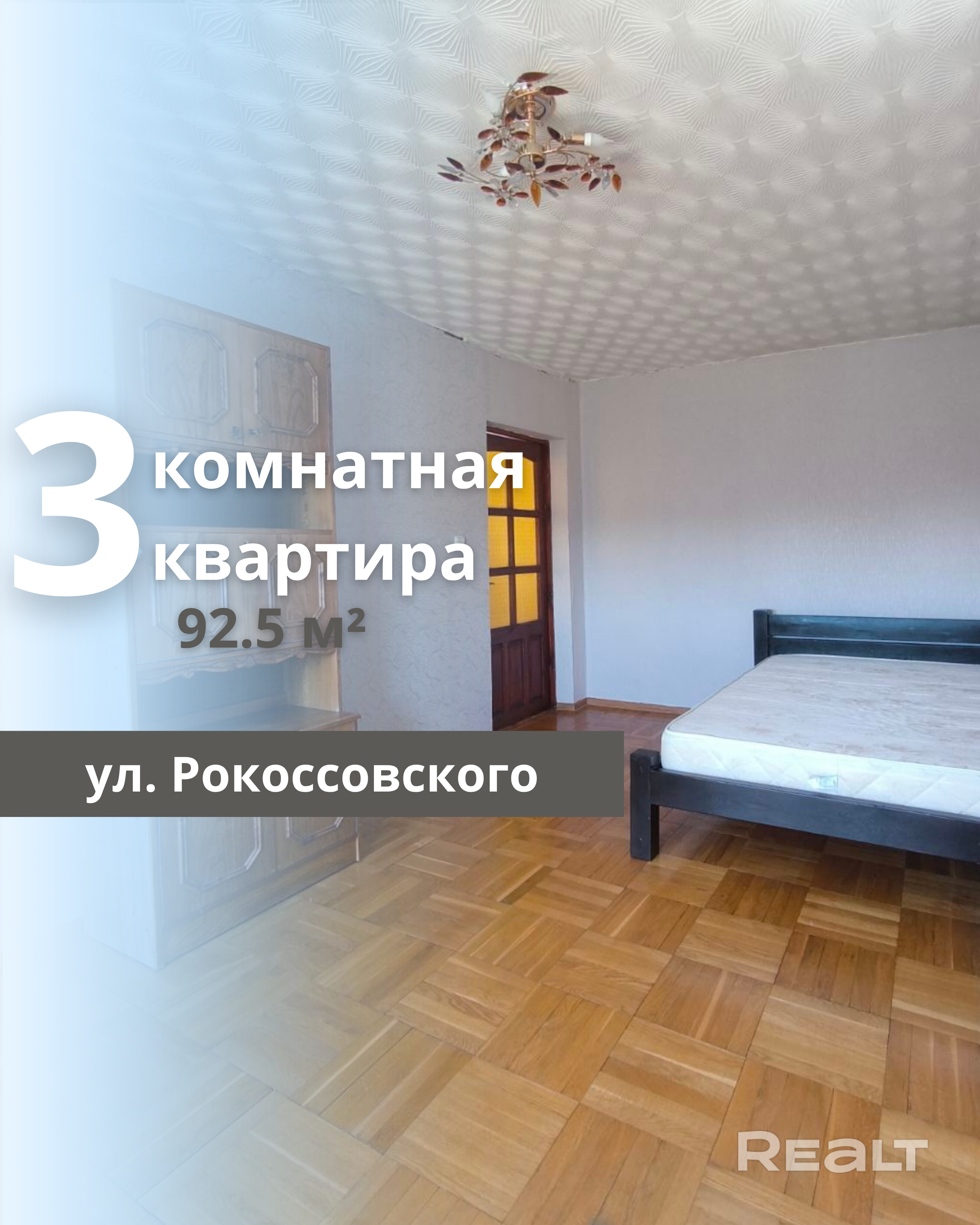 Предлагается к продаже 2-ухуровневая 3-комнатная квартира в микрорайоне Южный на улице Рокоссовского. Квартира расположена на 4 этаже 5-этажного панельного дома, построенного в 1988 году. Общая площадь квартиры составляет 92,5 м2, жилая — 48 м2, кухня — 8,7 м2. В квартире имеется балкон площадью 4 м2, а также совмещённый санузел, облицованный плиткой современного образца. Капитальный ремонт выполнен в 2025 году. Окна выполнены из ПВХ и дерева, потолки отделаны касетонами и краской. Полы покрыты паркетом, а стены оформлены обоями. Входная дверь металлическая, межкомнатные двери — из массива. Квартира расположена в удобном районе с развитой инфраструктурой: в пешей доступности находятся магазины, сад-школа, гимназия и храм. В настоящее время строится новый детский сад.