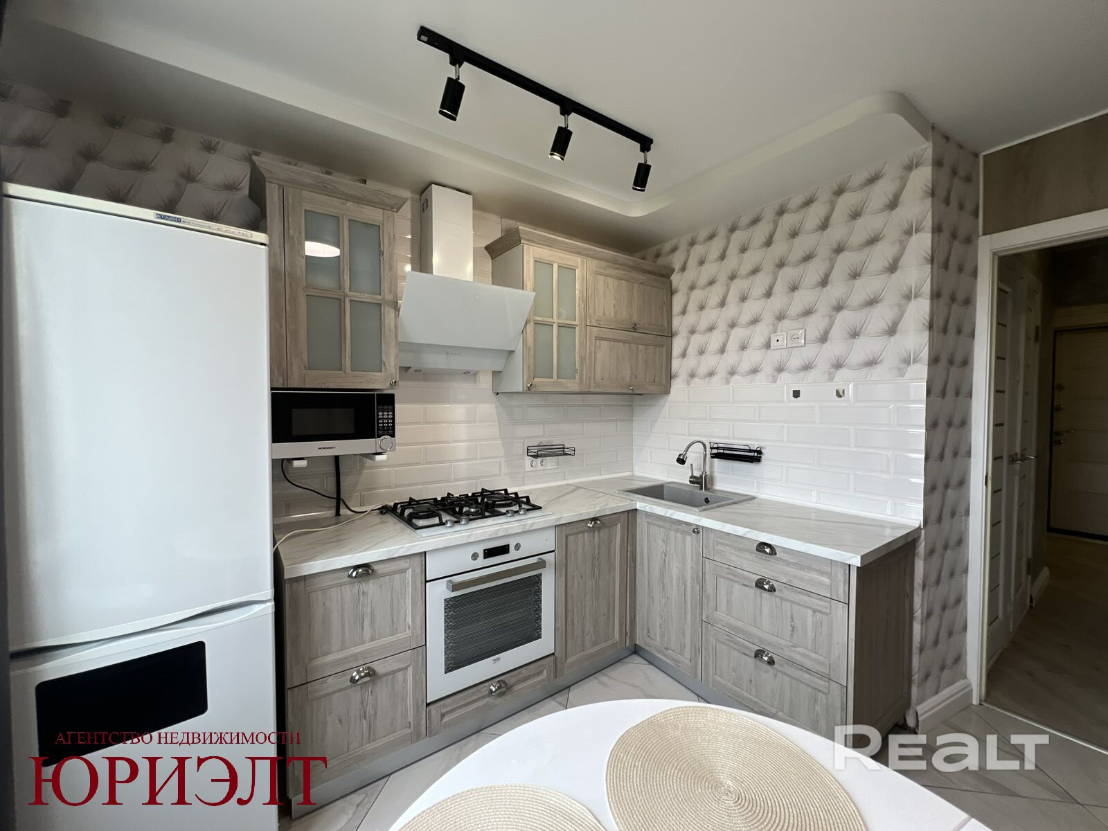 Квартира в хорошем состоянии, продается с мебелью и техникой: напольное покрытие - ламинат/плитка, стены - обои/декоративный кирпич, окна - пвх, потолок - натяжной, межкомнатные двери - массив, заменена электрика и сантехника.