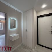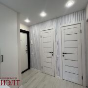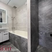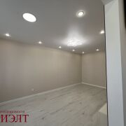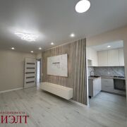 В квартире новый ремонт, никто не жил: напольное покрытие - ламинат (на стяжке), стены - выровнены обои/стеновые панели, потолок - натяжной, новая электрика и сантехника, много сценариев освещения.