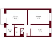 Общая площадь - 62,4 кв.м., жилая - 45,8 кв.м., кухня - 5,4 кв.м. Перепланировка зарегистрирована.
