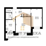 Общая площадь квартиры составляет 48,5 кв.м, жилая - 26,2 кв.м, кухня - 7,3 кв.м.