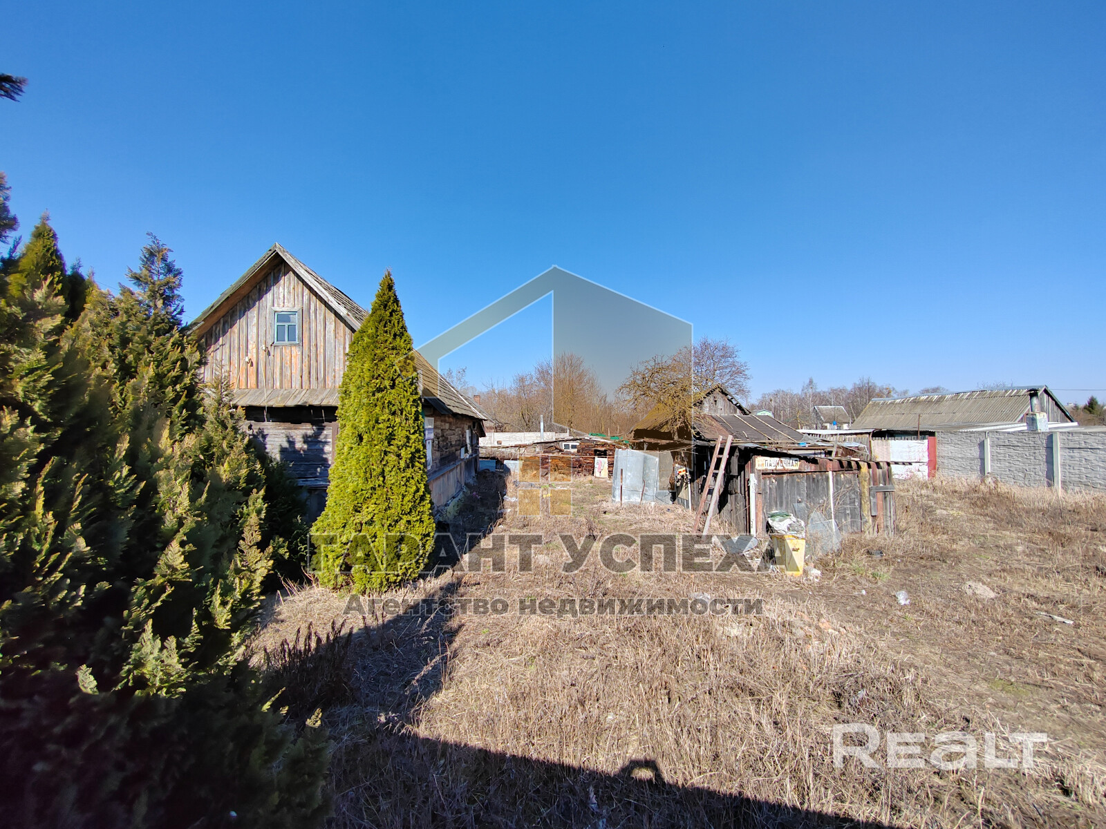 На участке помимо дома имеются деревянные хозпостройки и уличный туалет. На территории участка высажен плодовый сад с многолетними плодовыми деревьями.