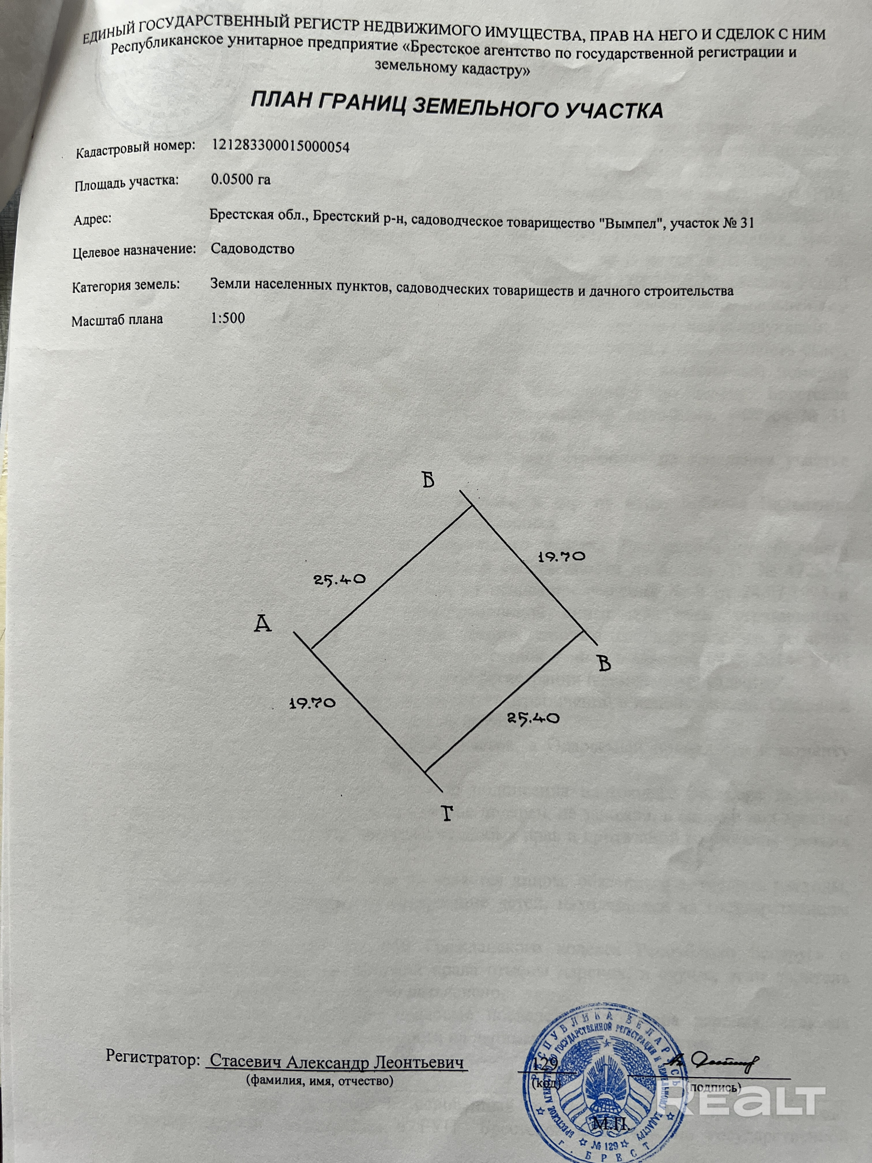 Купить участок, с/т Вымпел УВД, Центральная , 31 (Брестский р-н, Брестская область)