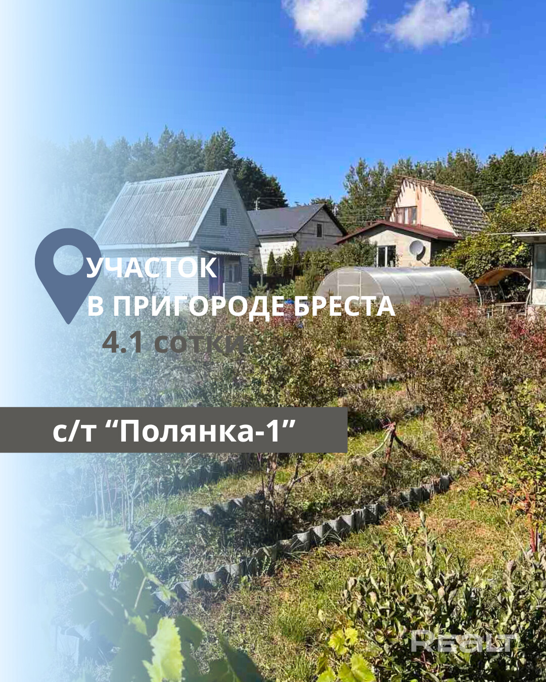 Участок в с/т Полянка-1 Мотыкальский с/с, 6 км от черты г. Брест. Площадь 0,041 га. Земля в частной собственности. Электричество есть. Водоснабжение - центральное. Участок огорожен по периметру. Большая часть участка засажена кустами голубики. К каждому кусту организован капельный полив. Сбор ягод голубики в 2025 г составил более 150 кг. Кусты были посажены в 2023 г. Есть небольшая грядка ремонтантной малины, плодоносит с начала лета до середины осени, ягоды крупные и вкусные. На участке есть хозпостройка, есть беседка. Участок расположен в 100 м от асфальта. Отличное транспортное сообщение с г. Брест, можно добраться на поездах, либо на маршрутках. Участок продается в связи с переездом.