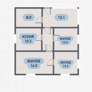 Участок правильной формы, плодородная почва, растут кусты малины, смородины, яблони и др., огорожен бетонным забором На участке деревянный дом 80,4 м.кв. и сарай из блоков