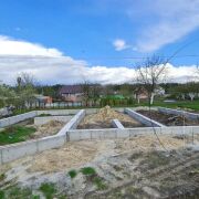 На участке фундамент современного дома - бунгало, построенный в полном соответствии строительным нормам и с большим запасом прочности: 0.9м глубиной и 0.6 м над уровнем нулевой отметки, капитально армирован, гидроизолирован.