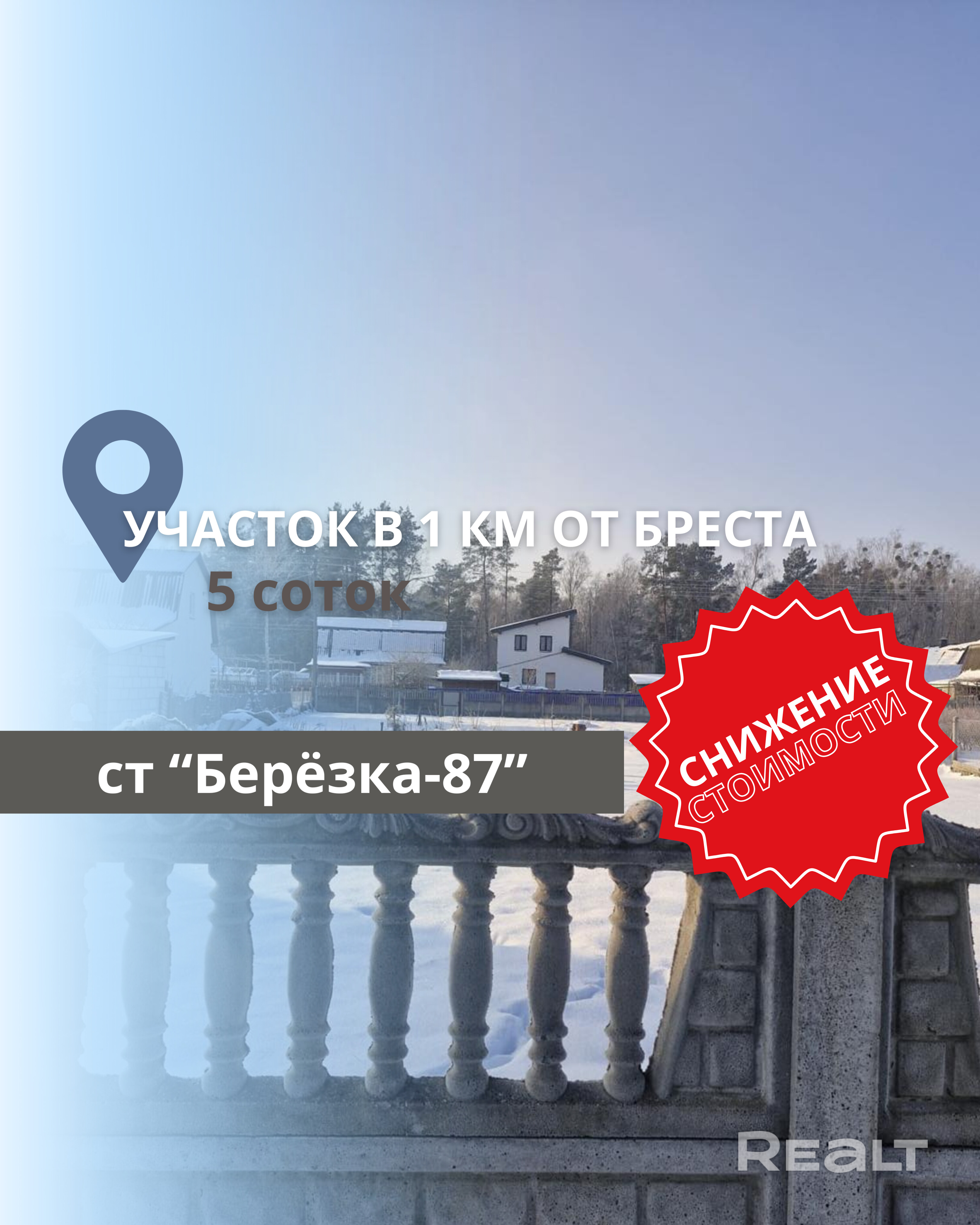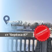 Продается участок площадью 5 соток, расположенный в 1 км от Бреста по Ковельскому шоссе, в сторону Мухавца. Участок огорожен, вычищен и имеет ровную поверхность. Газ проходит по улице (не оплачен), на участке уже есть электричество и скважина. Рядом доступен смежный участок, что предоставляет возможность приобрести его и построить просторный дом для постоянного проживания. Удобные подъездные пути и близость к лесу делают это место комфортным для жизни. Возможен торг.