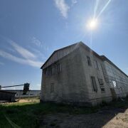 Площадь первого здания – 541,2 м2, материал стен - железобетонные панели, перекрытия - железобетонные, кровля - рубероид, полы бетонные, ворота - металлические и ворота. Фундамент - железобетонные блоки. Год постройки - 1984. В помещениях подведено электричество.