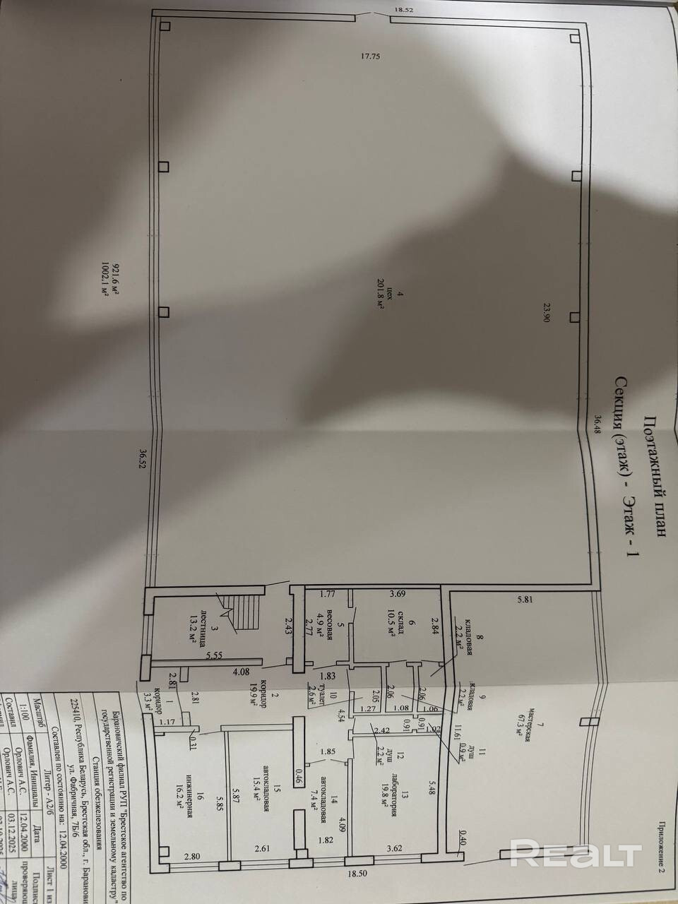 Капитальное строение с инв.№ 110/С-86221 по адресу: Брестская обл., г. Барановичи, ул. Фабричная 7Б/6, площадь 1002 кв.м.подробнее на нашем сайте