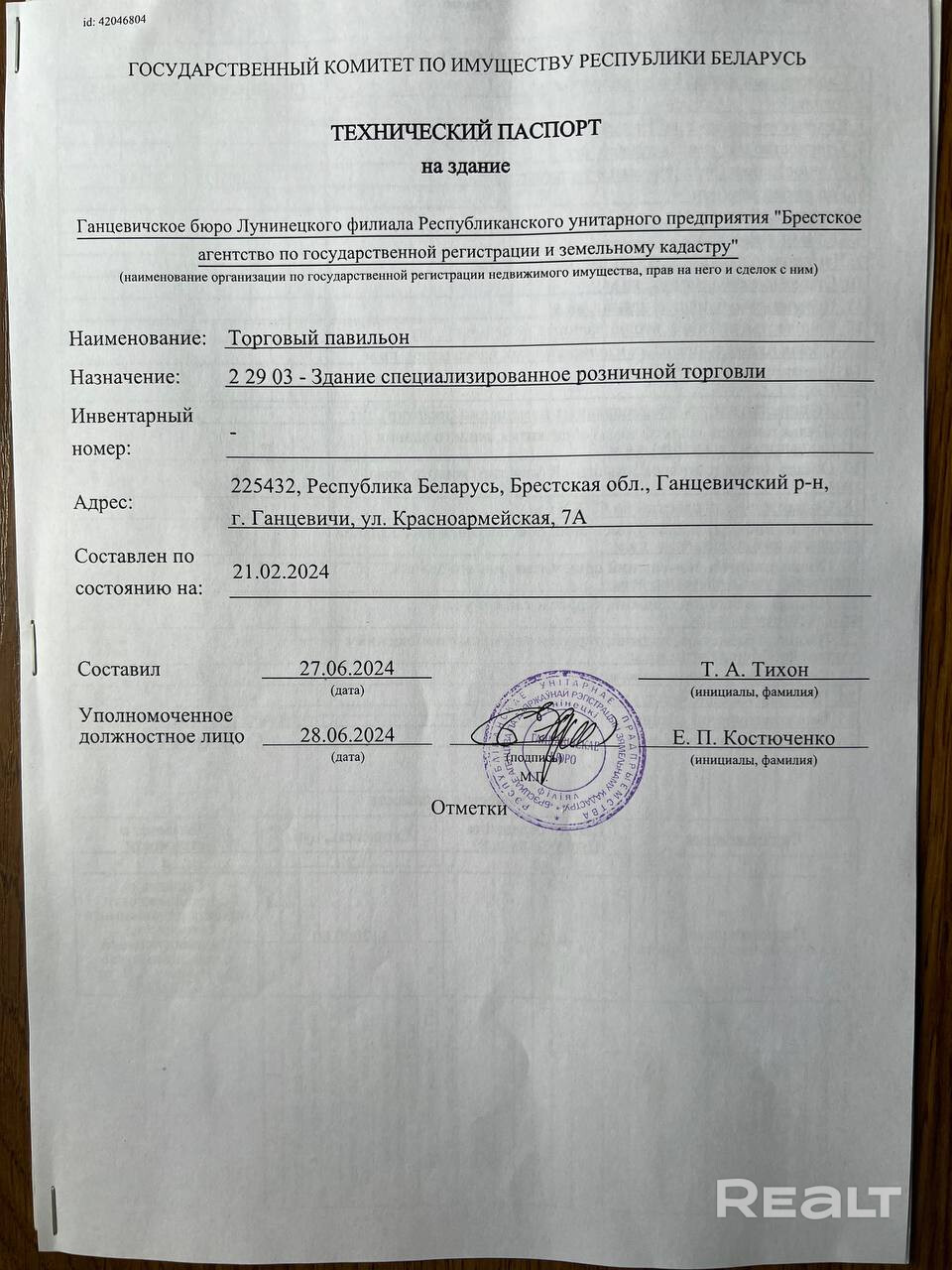 Купить торговое помещение, г. Ганцевичи, ул. Красноармейская, 7