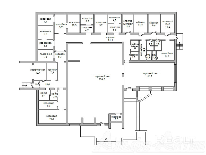 Здание магазина в собственность (назначение- здание специализированное розничной торговли) общей площадью 620,2 кв.м. в микрорайоне Дубровка города Бреста. Отдельностоящее капитальное строение. Имеются 2 (два) торговых зала площадью 194,8 и 59,1 кв.м, а также административные, подсобные и складские помещения разной площади. Высота потолков - 2,7 м. Имеется погрузочно-разгрузочная рампа. Все центральные коммуникаци, собственный теплоузел. Установлены индивидуальные приборы учета электро, водоснабжения и теплоснабжения, оборудована приточно-вытяжная вентиляция. Земельный участок общей площадью 0,1542 га предоставлен собственнику на праве постоянного пользование для обслуживания здания. Территория магазина огорожена бетонным забором, имеется парковка перед зданием. Цена указана с НДС. Договор № 444/1 от 31.07.2024, ЗАО «Альфа-Актив», УНП 290426827, лицензия № 02240/92 от 29.12.2005 на право осуществления деятельности по оказанию юридических услуг (риэлтерские услуги).