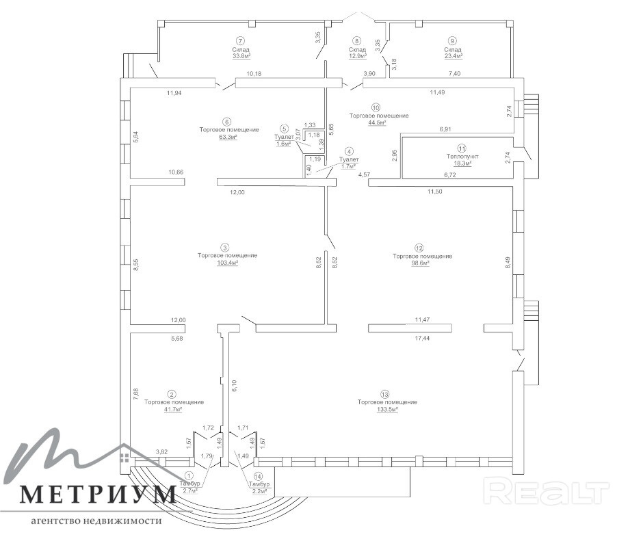 Площадь – 581,6 кв.м. Выполнена отделка (потолок ARMSTRONG, светлые покрашенные стены, на полу керамическая плитка), оборудованы санузлы и проведены все коммуникации. Есть два входа для посетителей и несколько входов для разгрузки.