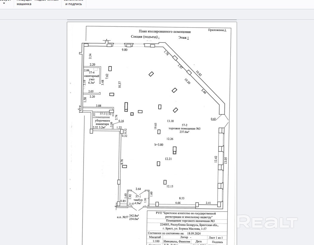 Купить торговое помещение, г. Брест, ул. Бориса Маслова, 1