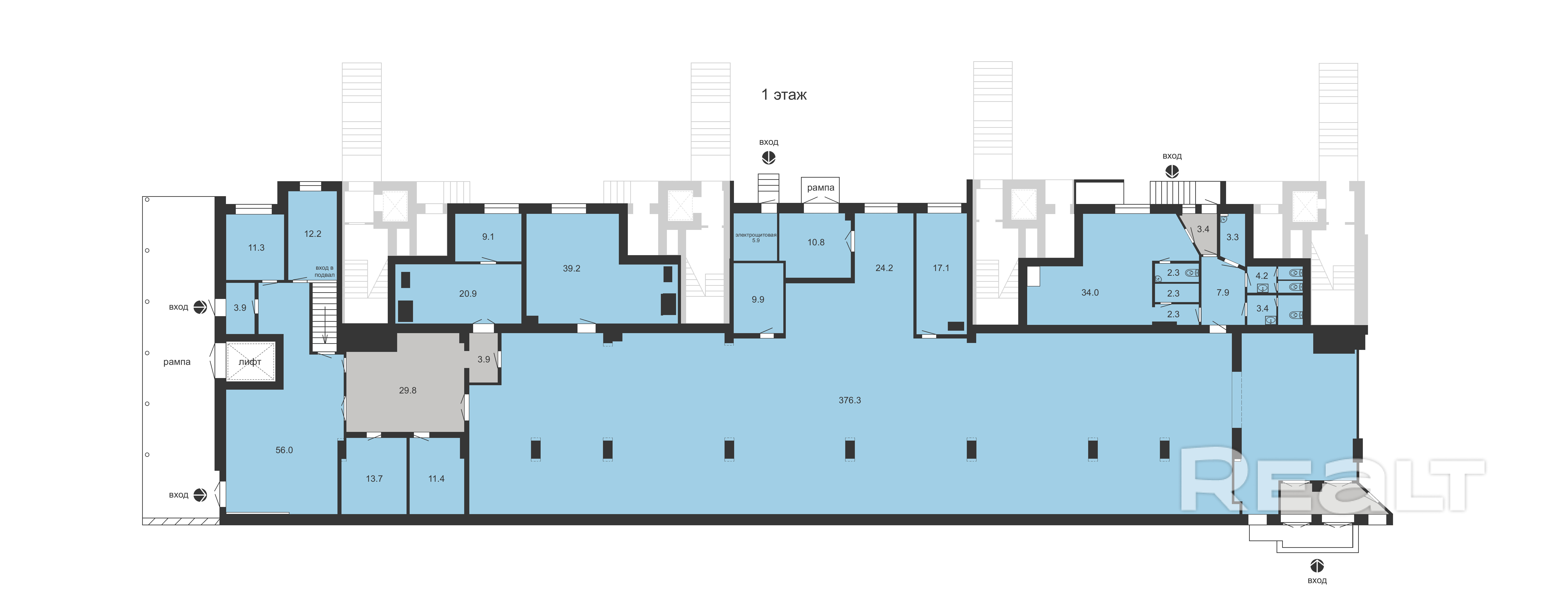 Основные помещения на первом этаже с отдельными входами более 721, м2 состоящее из: