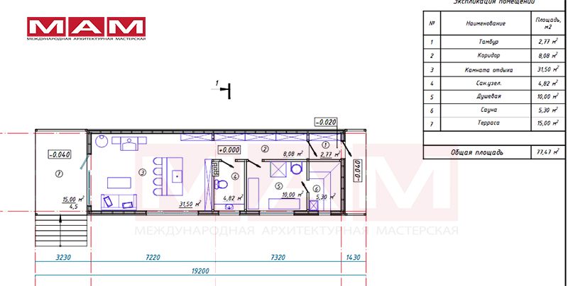 Проект бани "Косцов" площадью 77.47 кв.м.