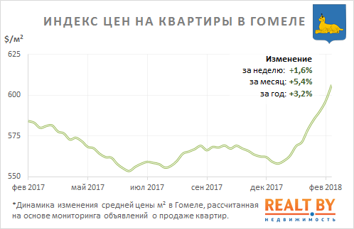 За неделю с 12 по 19 февраля информационно-аналитическим центром Realt.by были отмечены следующие изменения на первичном и вторичном рынках недвижимости города Гомеля: