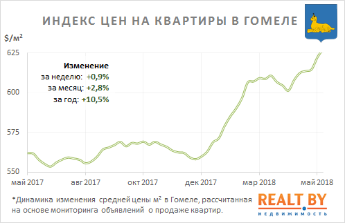 За неделю с 14 по 21 мая информационно-аналитическим центром Realt.by были отмечены следующие изменения на первичном и вторичном рынках недвижимости города Гомеля:
