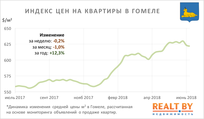 За неделю с 25 июня по 2 июля информационно-аналитическим центром Realt.by были отмечены следующие изменения на первичном и вторичном рынках недвижимости города Гомеля: