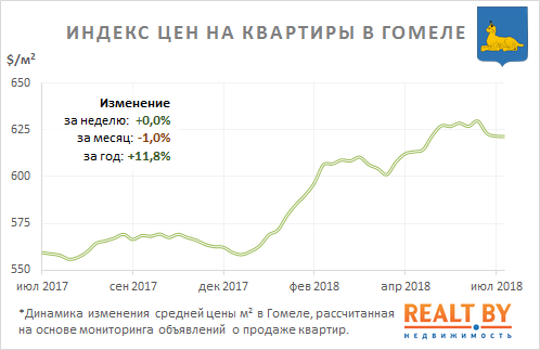 За неделю со 2 по 9 июля информационно-аналитическим центром Realt.by были отмечены следующие изменения на первичном и вторичном рынках недвижимости города Гомеля:
