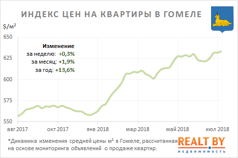 За неделю с 30 июля по 6 августа информационно-аналитическим центром Realt.by были отмечены следующие изменения на первичном и вторичном рынках недвижимости города Гомеля: