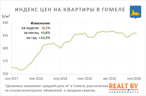 За неделю с 5 по 12 ноября информационно-аналитическим центром Realt.by были отмечены следующие изменения на первичном и вторичном рынках недвижимости города Гомеля: