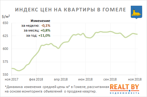 За неделю с 12 по 19 ноября информационно-аналитическим центром Realt.by были отмечены следующие изменения на первичном и вторичном рынках недвижимости города Гомеля: