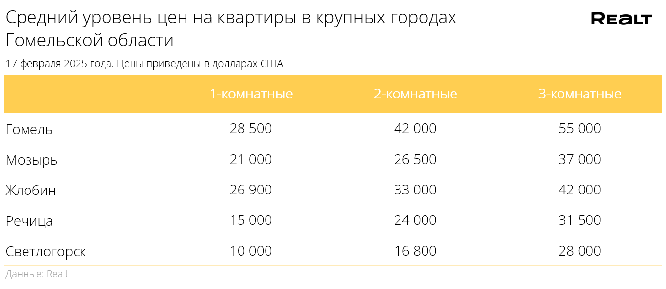 Для сравнения приведем средние цены на квартиры в других городах Беларуси: