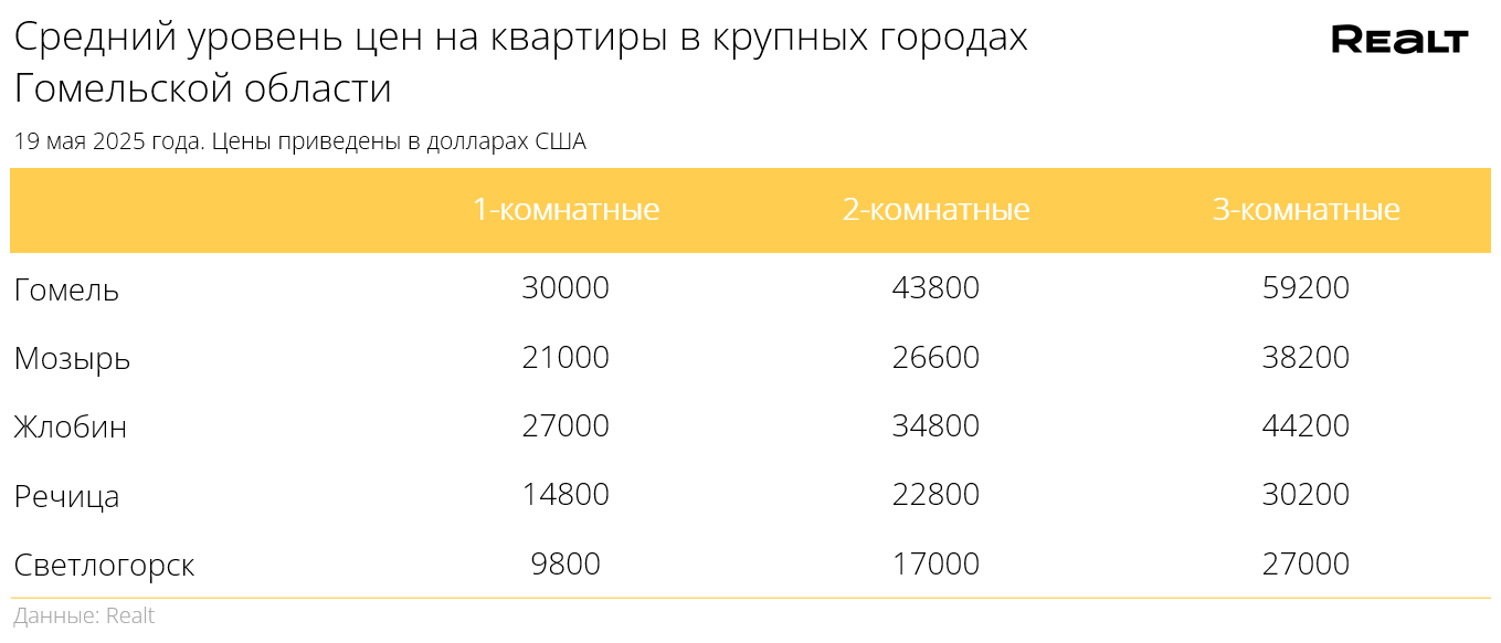 Для сравнения приведем средние цены на квартиры в других городах Беларуси: