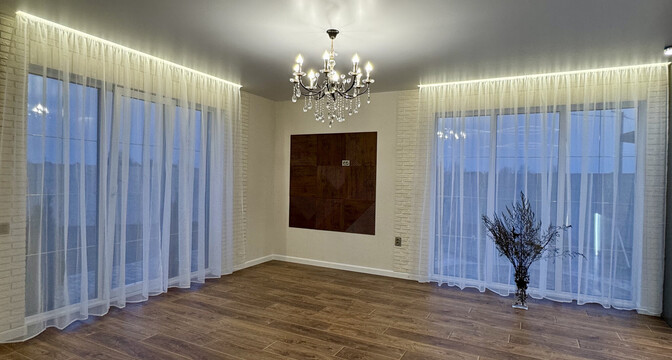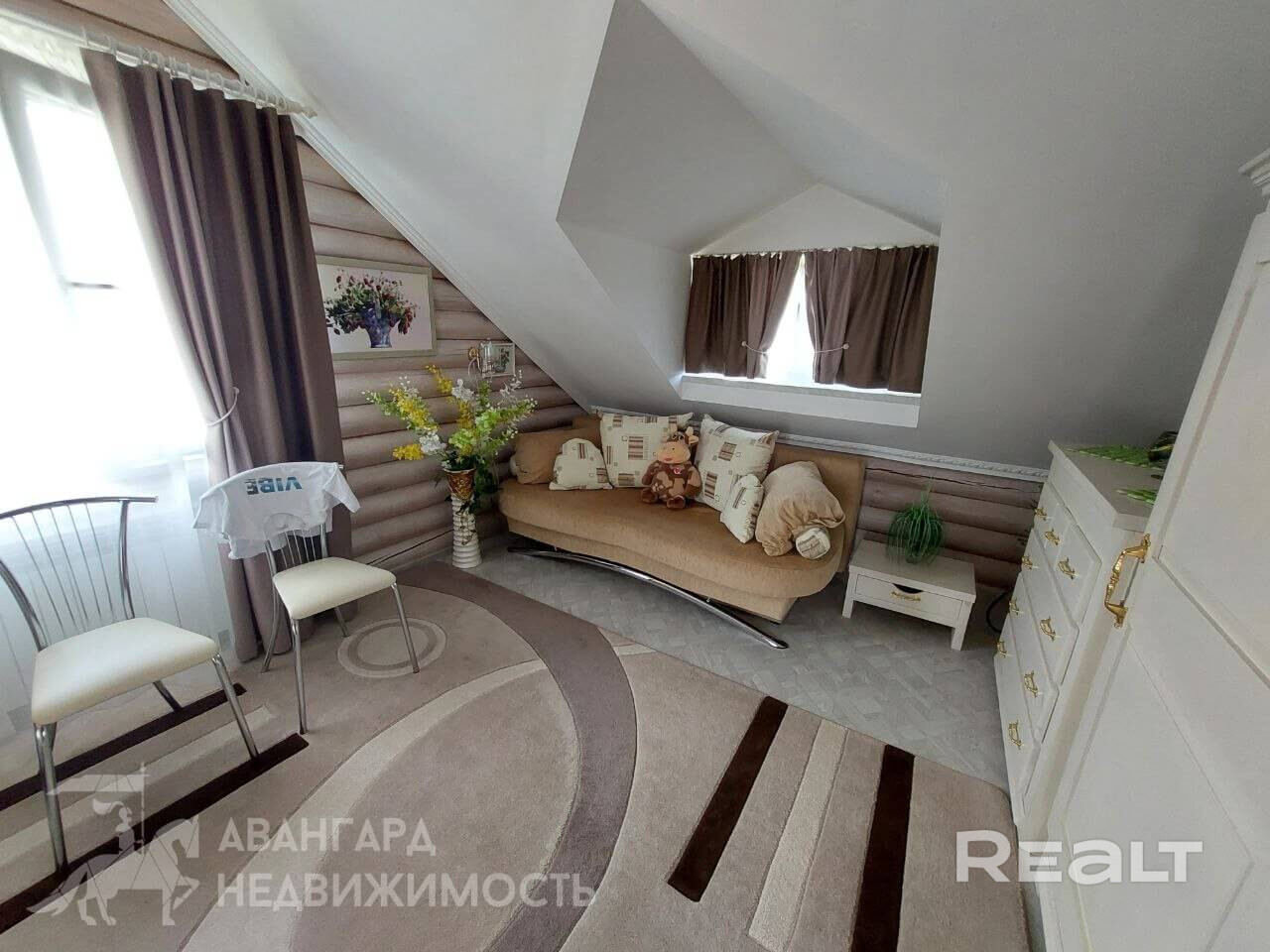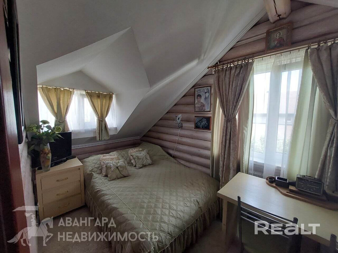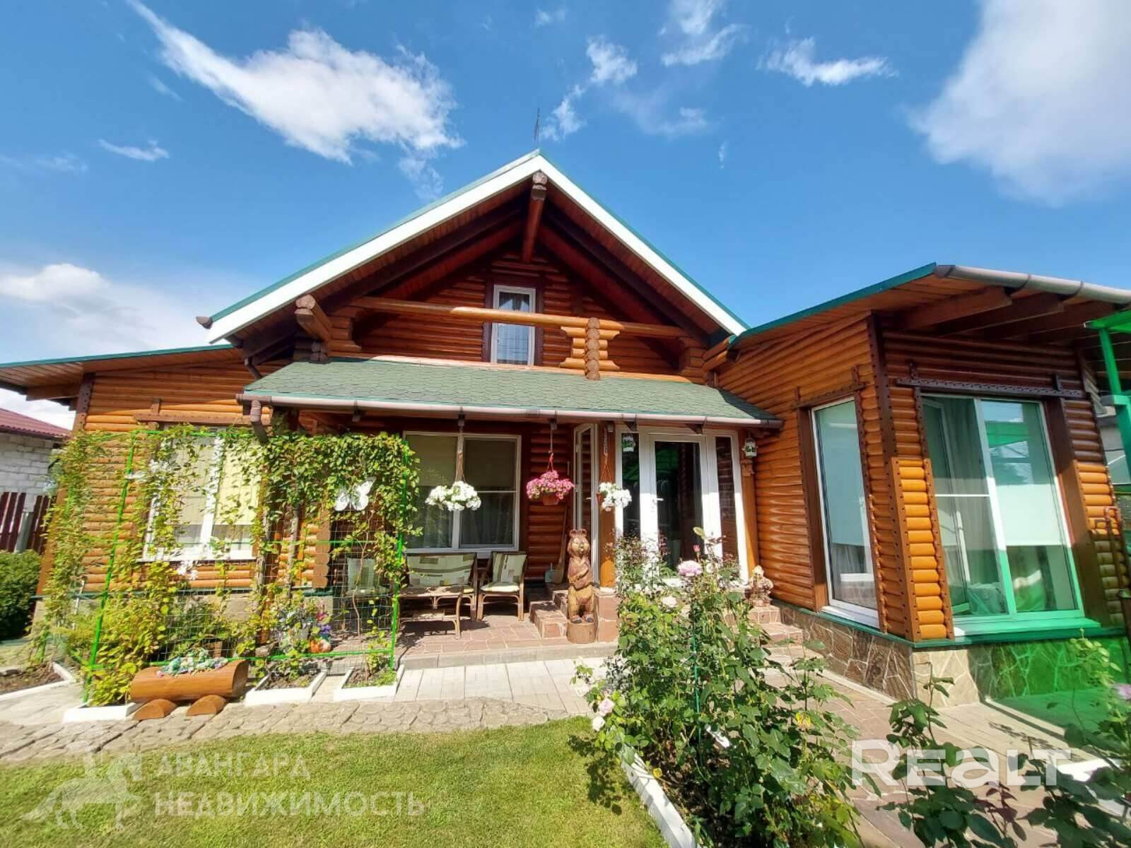 Самый дорогой вариант — двухэтажный бревенчатый дом площадью 130 квадратов. В доме пять комнат, гостиная, кухня с французскими окнами и санузел. Отопление газовое, водоснабжение центральное, канализация — септик. Площадь участка — 8 соток. Есть баня, беседка, теплица и зона для гриля.