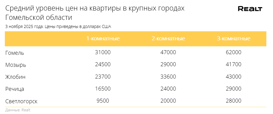 Для сравнения приведем средние цены на квартиры в других городах Беларуси: