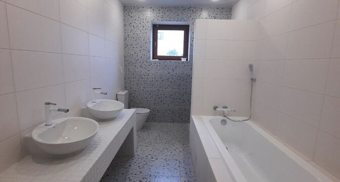 Предложение подороже — коттедж площадью 142 квадратных метра. Это дом 2020 года постройки расположен на участке 8 соток. В доме выполнен современный ремонт из дорогих материалов. Коттедж, который только предстоит наполнить мебелью и техникой, состоит из кухни-гостиной, трех жилых комнат, а также просторной ванной комнаты с сантехникой. В коридоре и кухне — теплые полы. Большая кухня совмещена с гостиной и имеет дополнительный выход на террасу. Ну, а стоит такой дом 135 тысяч долларов.