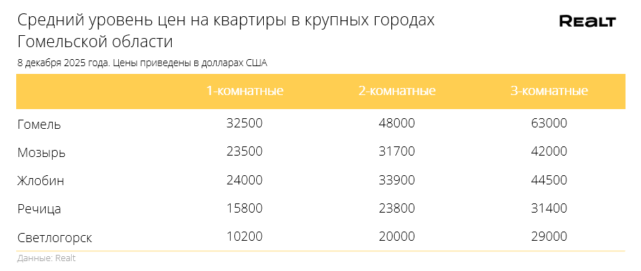 Для сравнения приведем средние цены на квартиры в других городах Беларуси: