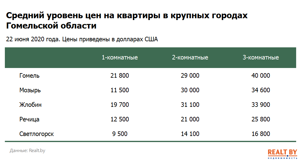 Мониторинг цен предложения квартир в Гомеле и городах Гомельской области за 15−22 июня 2020 года