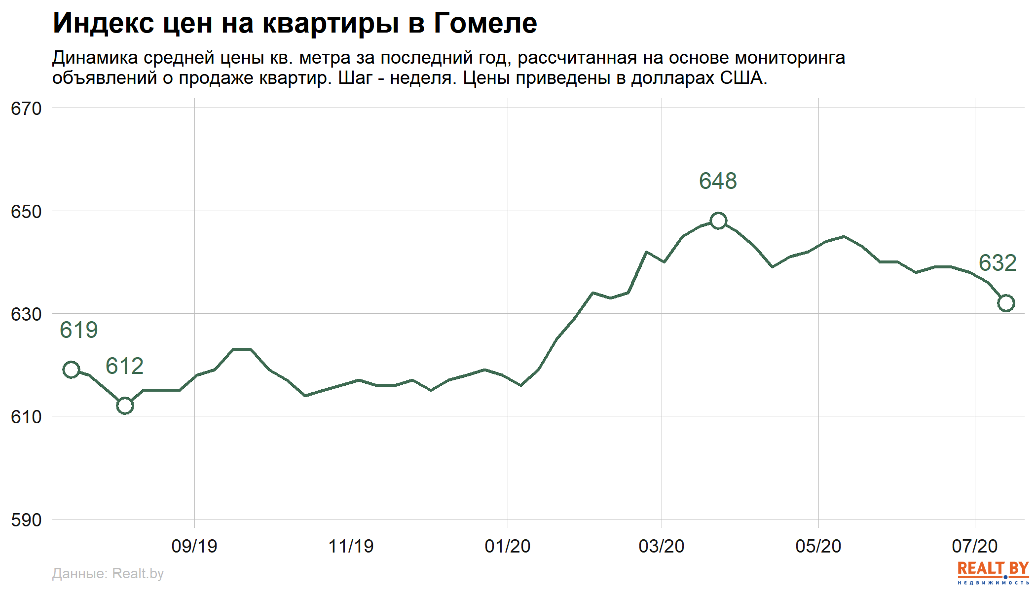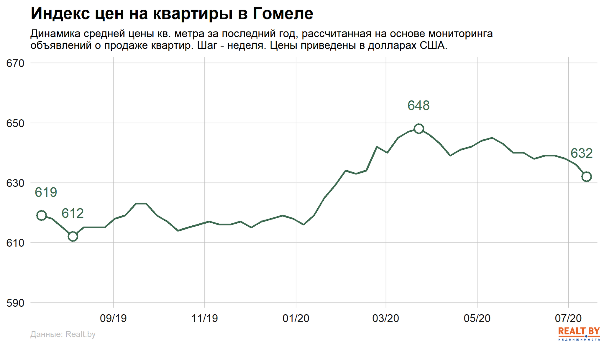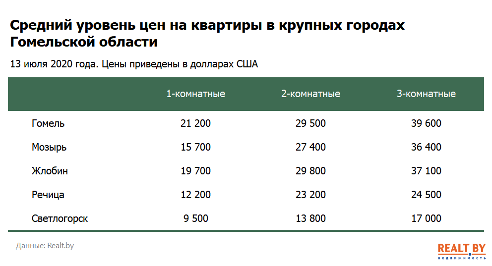 Мониторинг цен предложения квартир в Гомеле и городах Гомельской области за 6−13 июля 2020 года