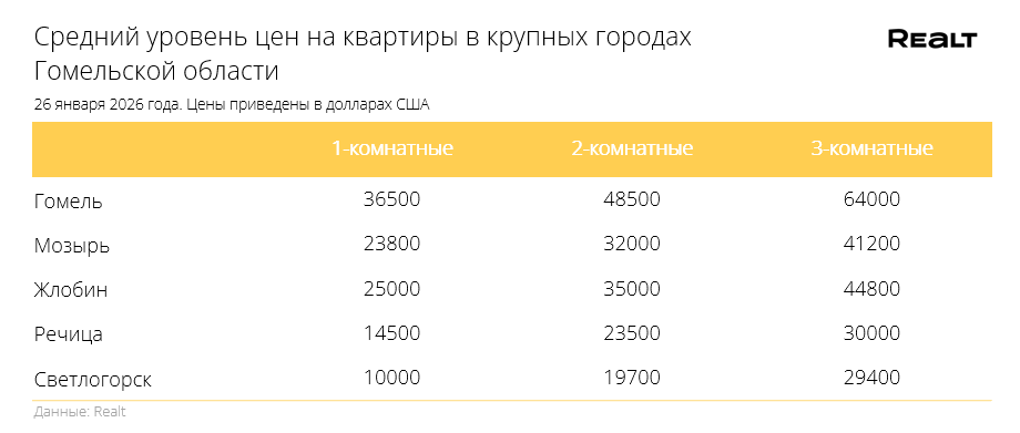 Квадрат двушек пошел вниз. Что произошло со стоимостью квартир в Гомеле и области за 19−26 января 2026 года
