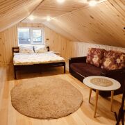 Дом с баней (Большая комната со спальными местами, телевизором, и вторая комната на втором этаже с диваном и кроватью) находится в самом центре д.Зябровка, рядом с центральной улицей и остановкой, удобная парковка, в шаговой доступности магазин. 15 мин на машине от ост. 2 школа(Новобелица). Дом со всеми удобствами: туалет, душ, вода (скважина), горячая вода также есть, отопление, камин. Большая озелененная территория, мангал и большая крытая беседка, детская площадка. Баня за отдельную оплату. Кухня со всеми необходимыми бытовыми приборами и посудой.