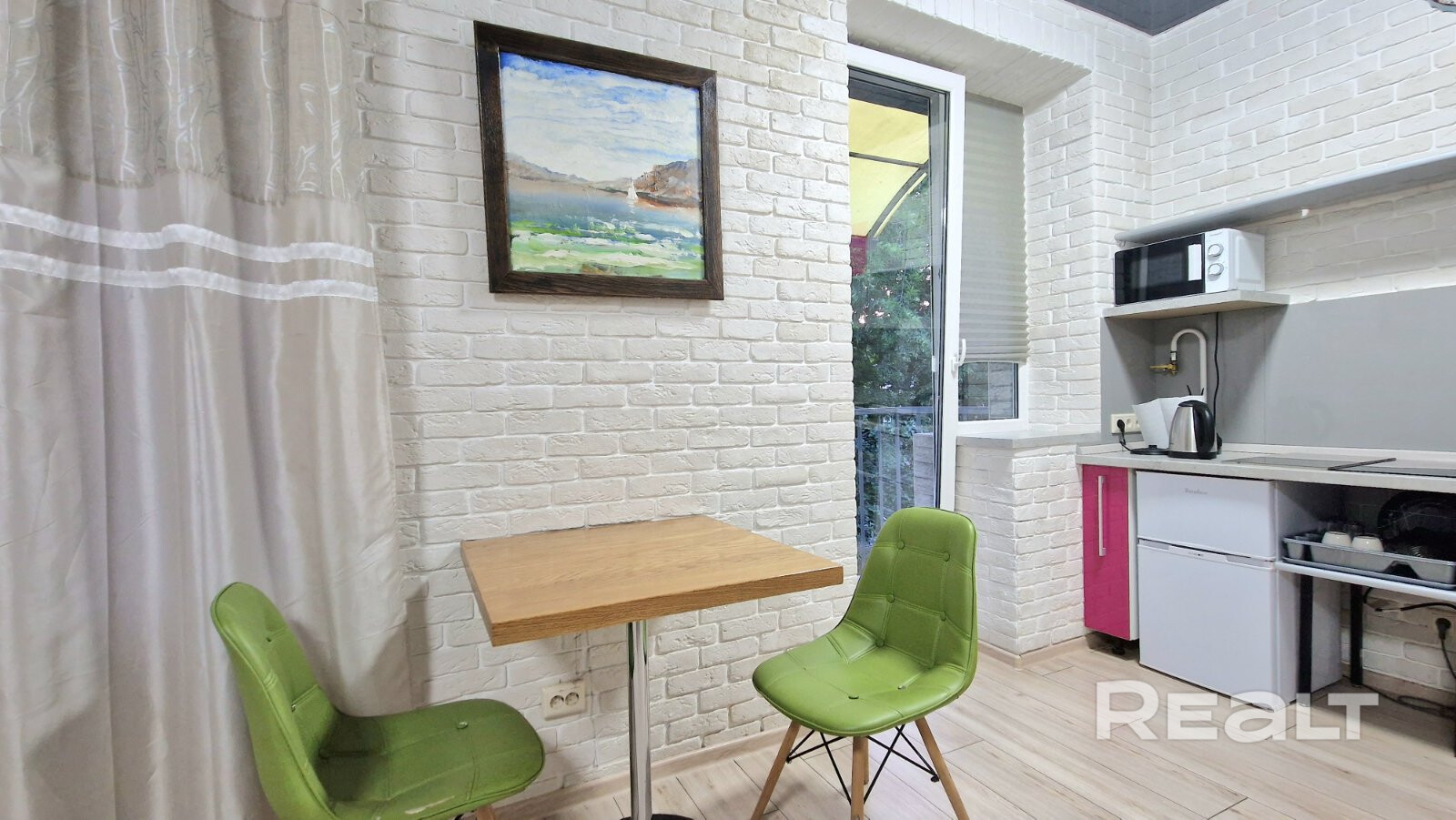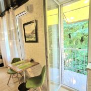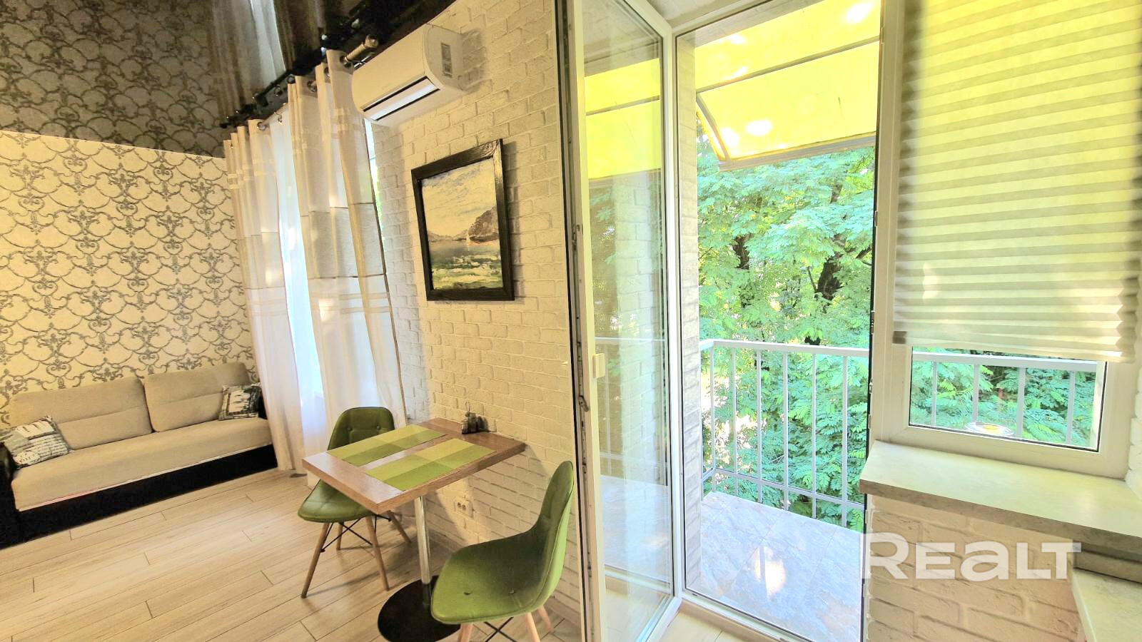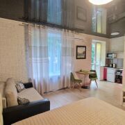 Уютная студия в непосредственной близости к городскому парку. Светлая, просторная, окна с балконом выходят на зеленую зону. Тихий уютный дворик граничит с бурной и активной жизнью центра города.