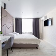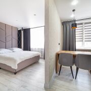 Новая студия премиум класса расположена в 2 мин пешком от ЖД вокзала. На перекрестке двух центральных улиц - проспект Победы и проспект Ленина. Туристический центр. Это любимая часть города Гомеля среди наших гостей согласно независимым отзывам. Высокий 6 этаж и расположение квартиры не дает возможности уличному шуму проникать в квартиру. В доме есть лифт. Аккуратный подьезд. Кондиционер решает проблему комфортной температуры для вашего проживания. Студия сдается только для некурящих гостей. 1 гость или пара. В студии есть все для комфортного проживания на несколько дней, а уникальная локация и множество кафе, баров, ресторанов, караоке, рынков и магазинов делает ваш досуг более разнообразным. К услугам гостей бесплатный Wi-Fi, Смарт ТВ. Размещение домашних животных не допускается. Во дворе проблем с бесплатной парковкой нет. В пешей доступности зарядка для электромобиля.