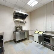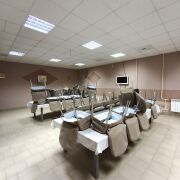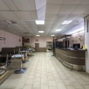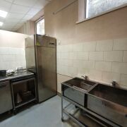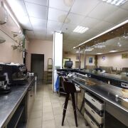 Помещение общей площадью 390 кв.м. расположено в цокольном этаже административно-торгового здания в микрорайоне Сельмаш рядом с ДК Гомсельмаш. В здании сделан современный ремонт. Имеется два входа для персонала и посетителей, и приёма товара. В состав помещения входят: обеденный зал с барной стойкой, банкетный зал, доготовочный цех, овощной цех, цех приготовления полуфабрикатов, наружняя холодильная камера, моечная кухонной и столовой посуды, гардероб для персонала, санузел с душевой.