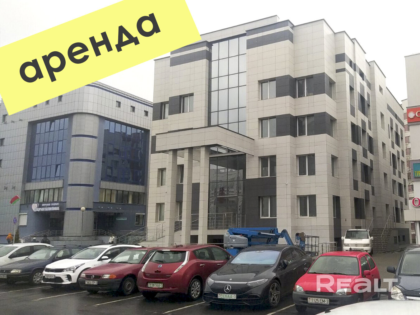 всего в нескольких метрах от здания находятся две вновь построенные большие и современные поликлиники (взрослая и детская), самая большая в городе жилая застройка многоэтажными высотными домами, в т.ч. свыше 20-ти этажей (это самый крупный и молодой район г. Гомеля, который застраивается до сих пор, часть высотных 20-ти этажных домов будет построена по ген.плану в 2024-2025г., в непосредственной шаговой близости находятся ещё три вновь застраиваемых микрорайона города ( 16-ый, 17-ый и 18-ый микрорайоны).