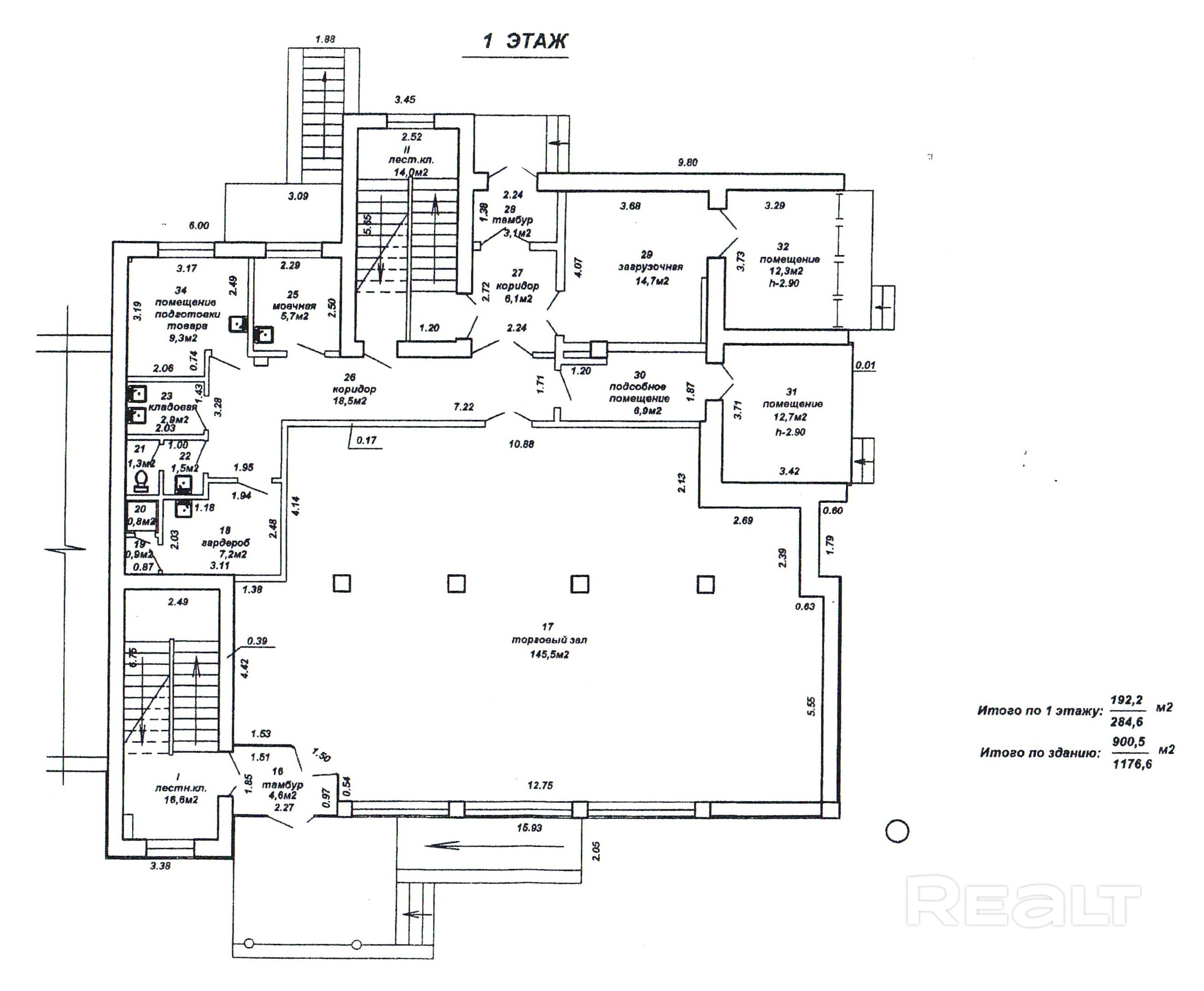 1 этаж - 284,6 м2;
