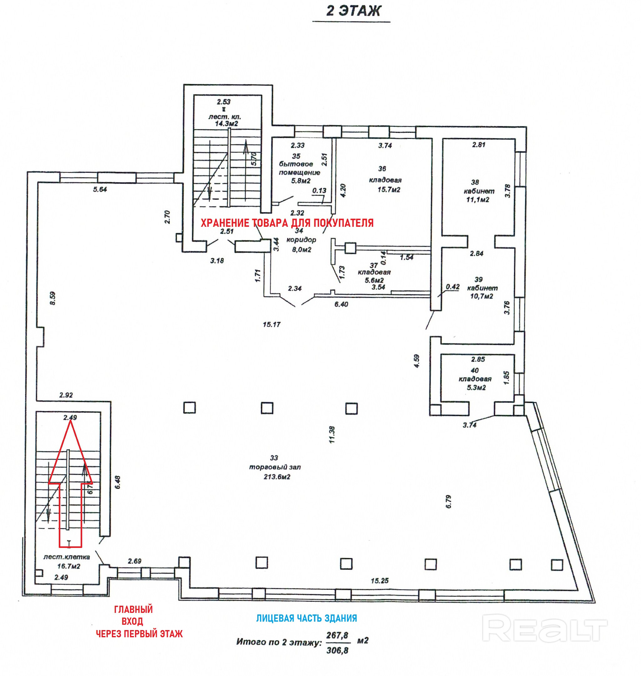 Торговое помещение на 2 этаже 306,8 м2.