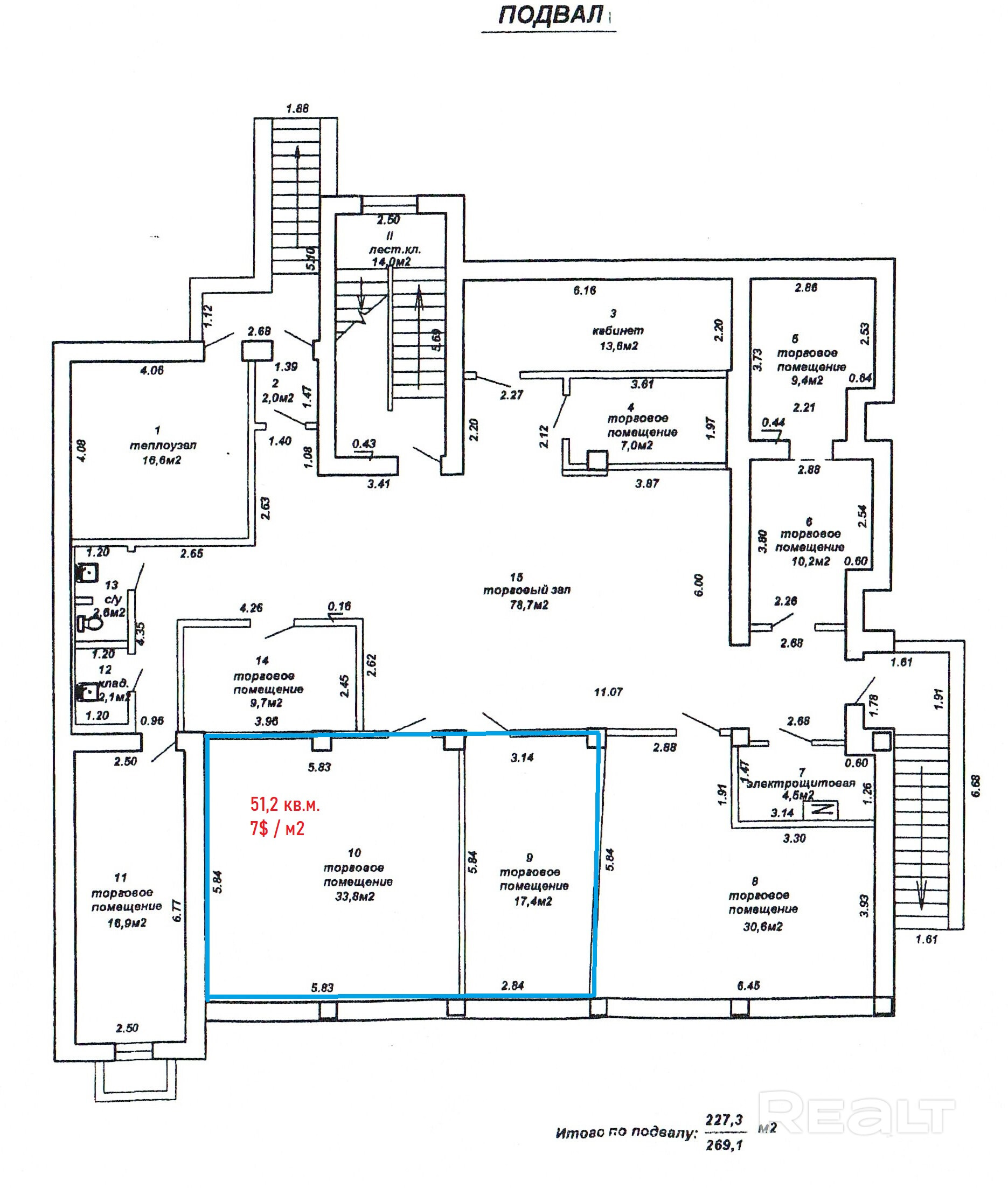 Аренда всего цокольного этажа - 269,1 м2