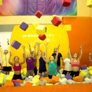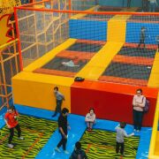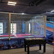 - Батутная зона (пять батутов с суперпрыгучими сеточками JetBlack, которые имеют выход в яму с мягкими кубиками).