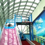 - шестиэтажный лабиринт, который подымает на высоту 7 метров и заканчивается двойной горкой - желобом (16 м длиной) и тройной горкой волной (20м длинной) - заканчивающиеся огромным шариковым бассейном