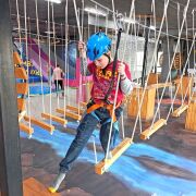 - канатная дорога, установленная прямо над аттракционами - в специальном снаряжении можно прокатиться по канату через весь зал - длина 33 м
