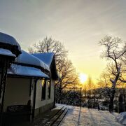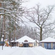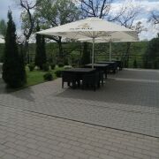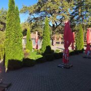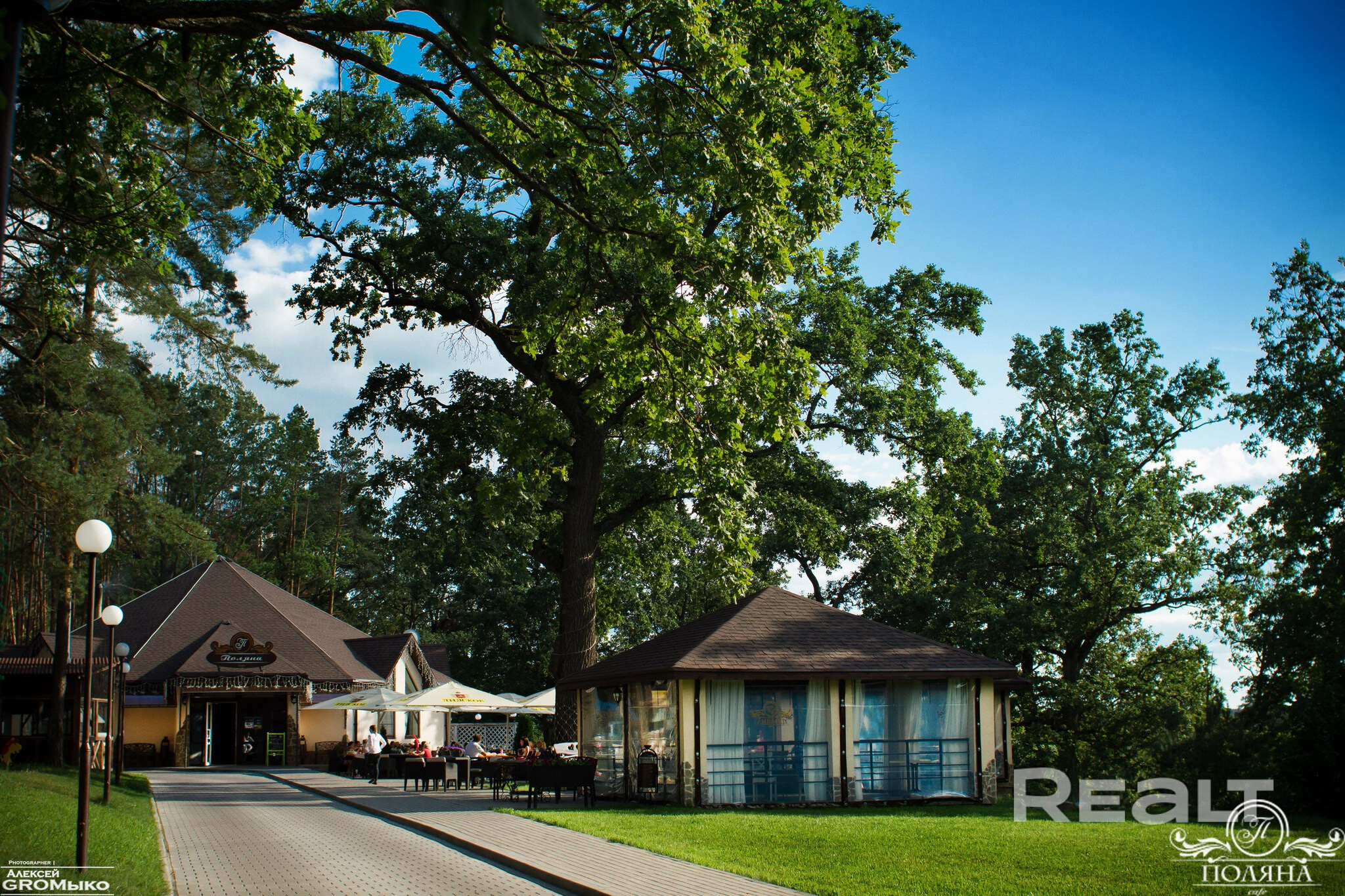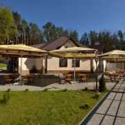 На территории ресторанного комплекса имеются летние беседки, успешно функционирующие в теплое время года, много места для танцев и прочих развлечений (для организации досуга детей имеется детская игровая площадка).