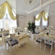 - светлый + летняя терраса: проведение юбилеев, свадеб и прочих больших праздников и мероприятий. Все праздники оформляются изысканными тематическими декорациями и содержат музыкальное сопровождение.